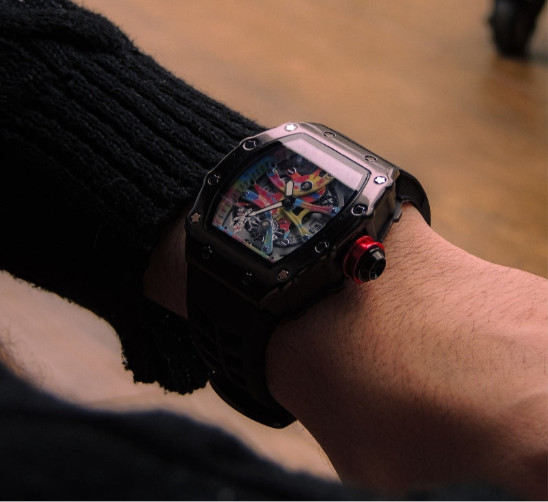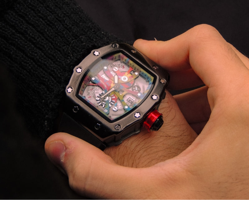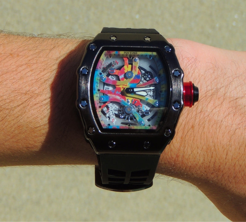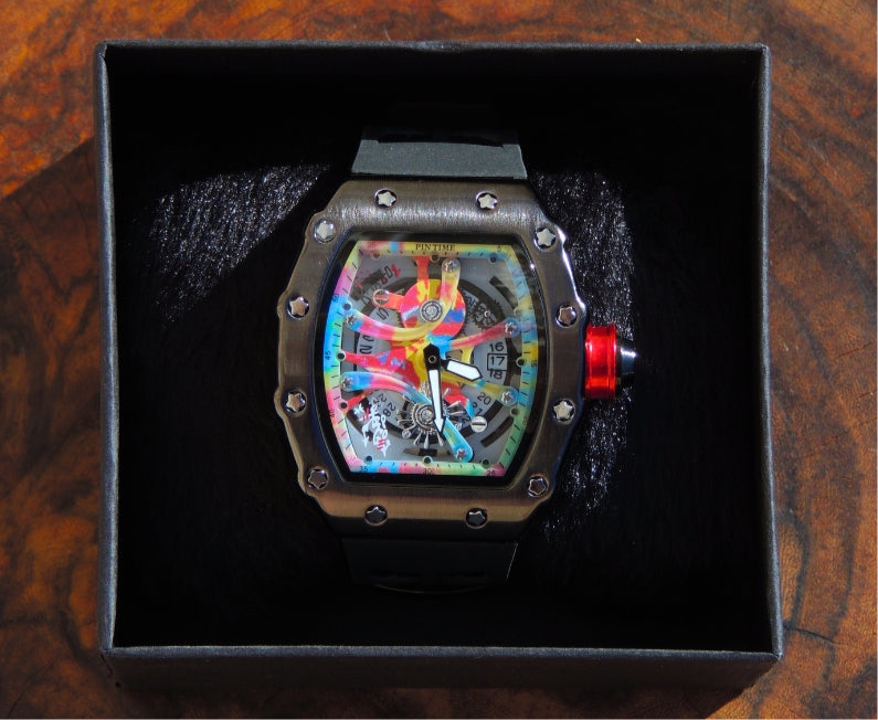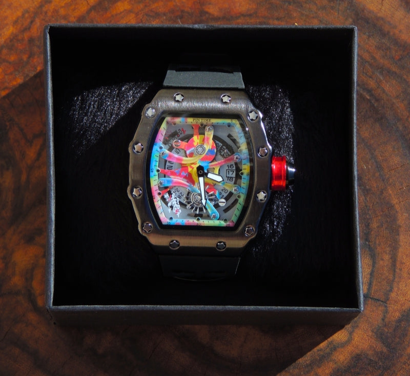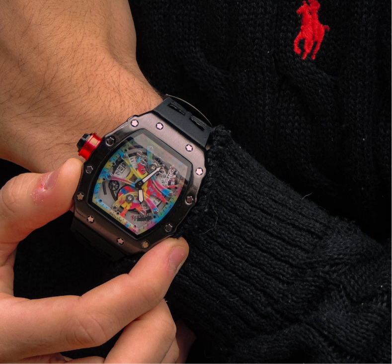 O Graffiti é uma obra-prima de design e tecnologia, inspirado no estilo icônico de Richard Mille, trazendo ousadia e modernidade para quem busca exclusividade. Com um visual arrojado que remete à arte urbana, este relógio automático é a escolha perfeita para quem quer fazer uma declaração de estilo com confiança e personalidade.