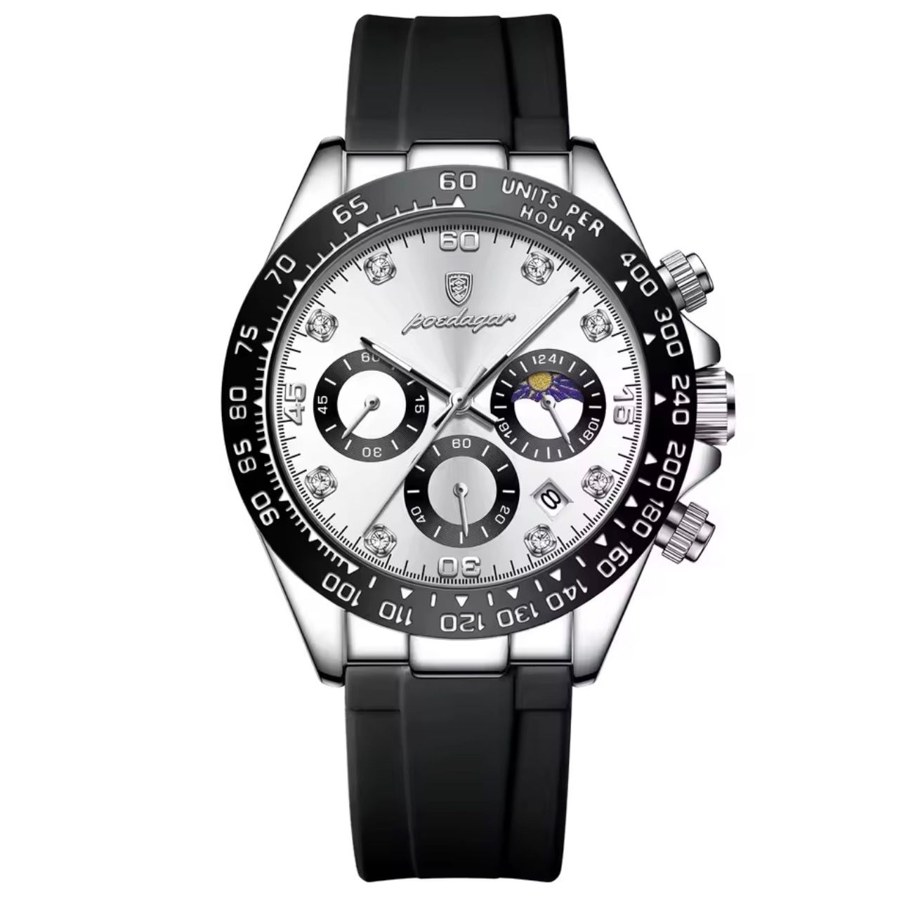 Sua caixa em aço inoxidável proporciona resistência e durabilidade, enquanto a pulseira em borracha premium assegura conforto e ajuste perfeito ao pulso, ideal para o dia a dia ou momentos de adrenalina. Com um mostrador refinado e detalhes que remetem à velocidade e ao luxo, o Anvil Seamaster Diver é a escolha perfeita para quem busca sofisticação sem abrir mão da esportividade.]
