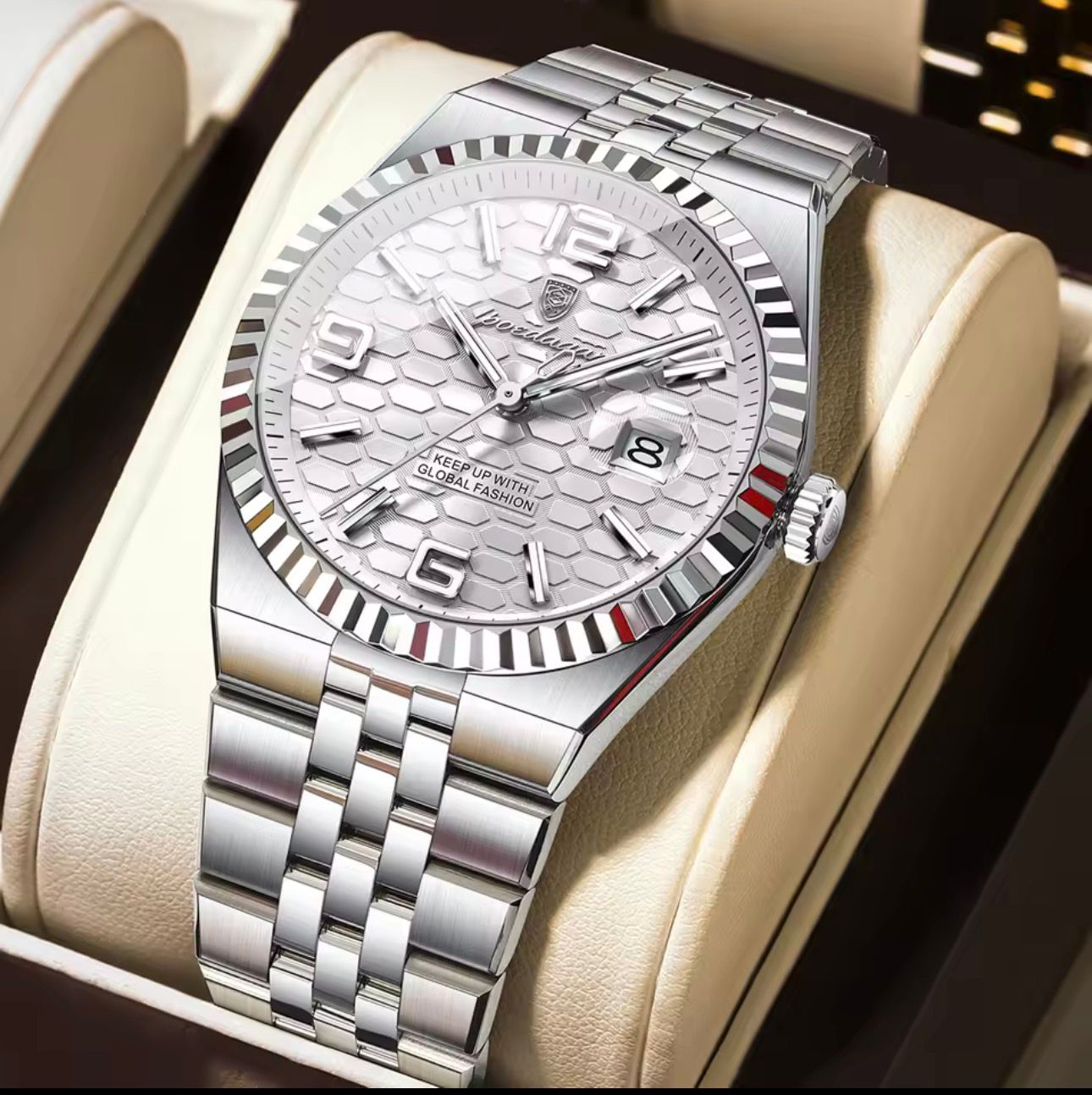 O fecho de fivela oculto da pulseira de aço garante um ajuste seguro ao pulso, conforto não apenas segurança, mas também conforto. Com um comprimento de 23cm, este relógio se adapta a diferentes tamanhos de pulso, podendo ser facilmente ajustado.
