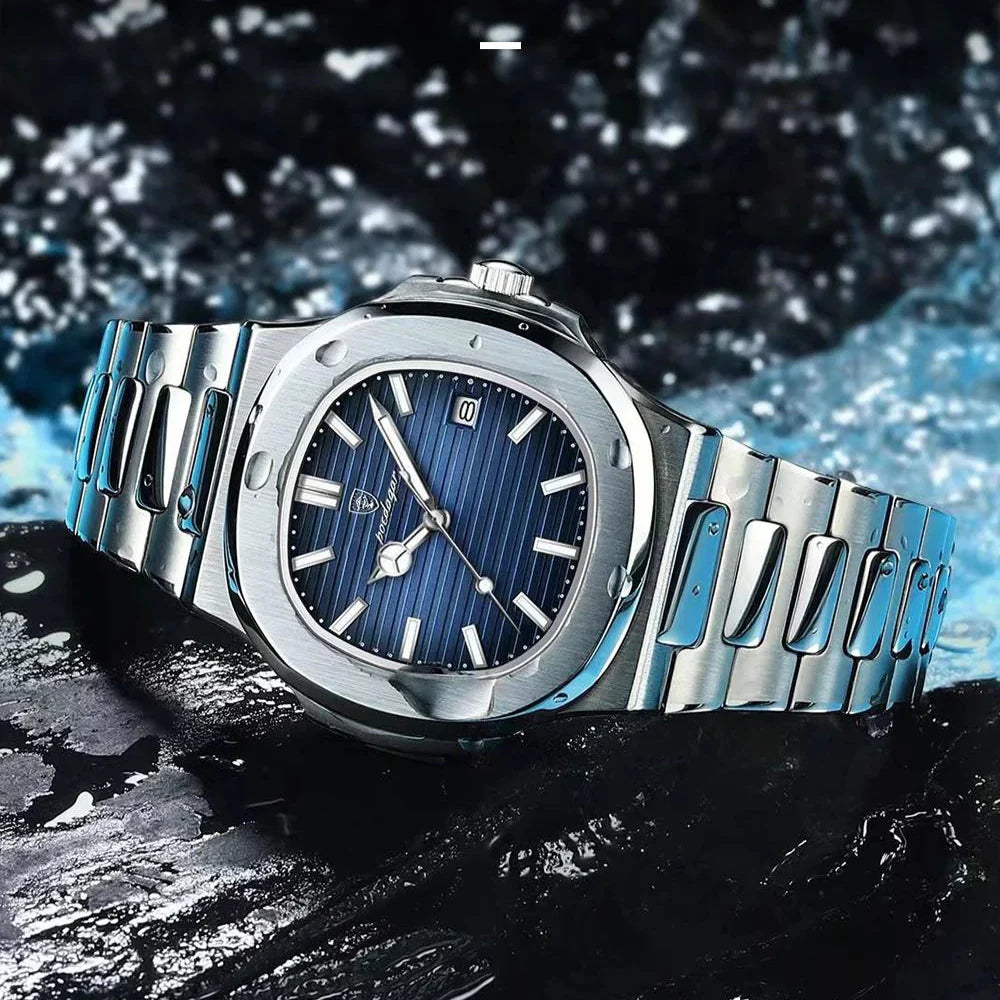 Equipado com uma pulseira em aço inoxidável e fecho em fivela oculta, este relógio não oferece apenas durabilidade excepcional, mas também proporciona um ajuste confortável, garantindo que você esteja impecável em qualquer ocasião.