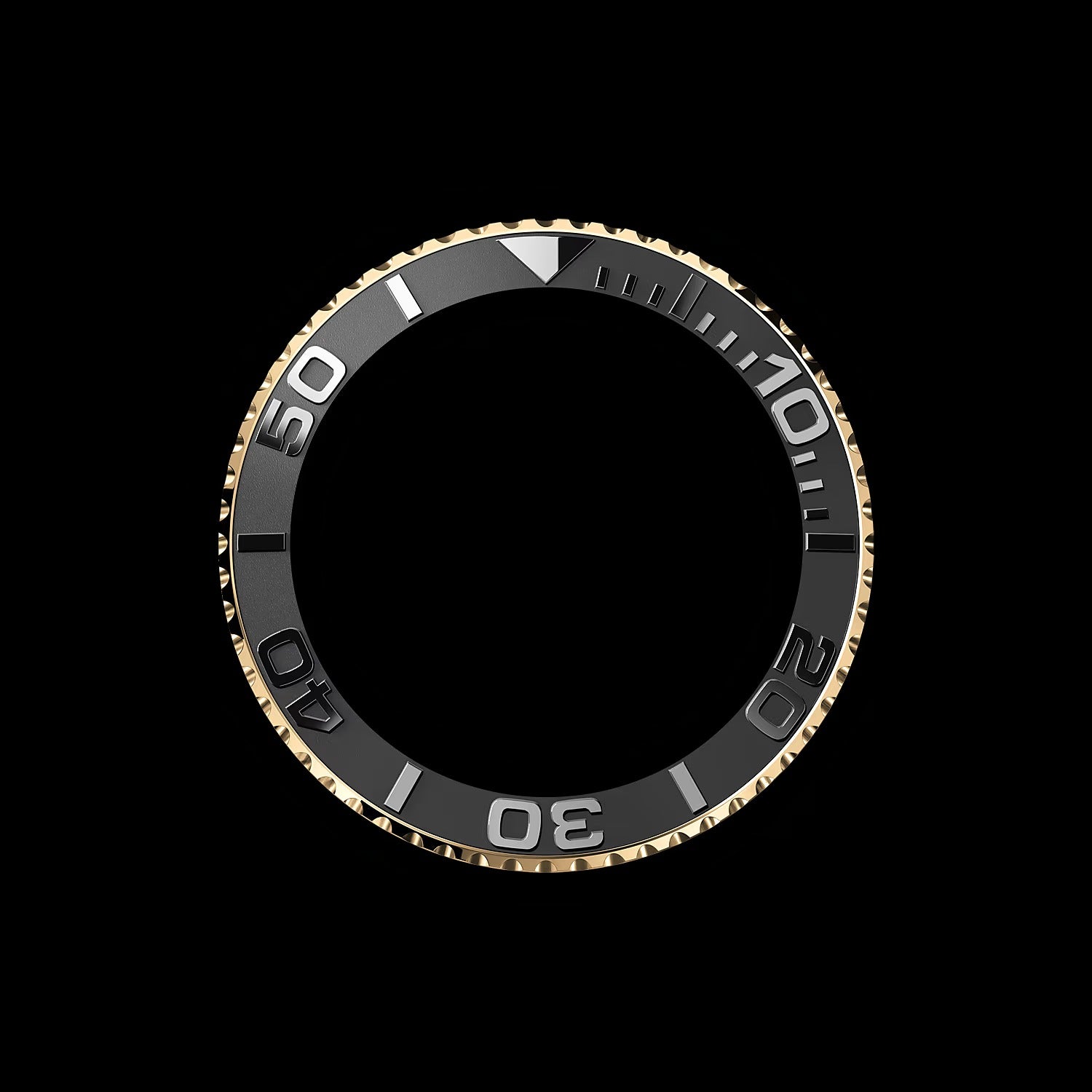 Luneta giratória bidirecional graduada 60 minutos com disco de cerâmica Cerachrom preto fosco, numerais e graduações polidos em relevo