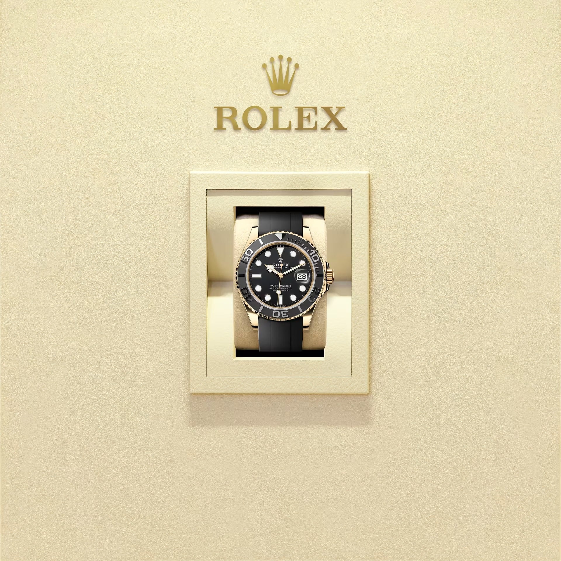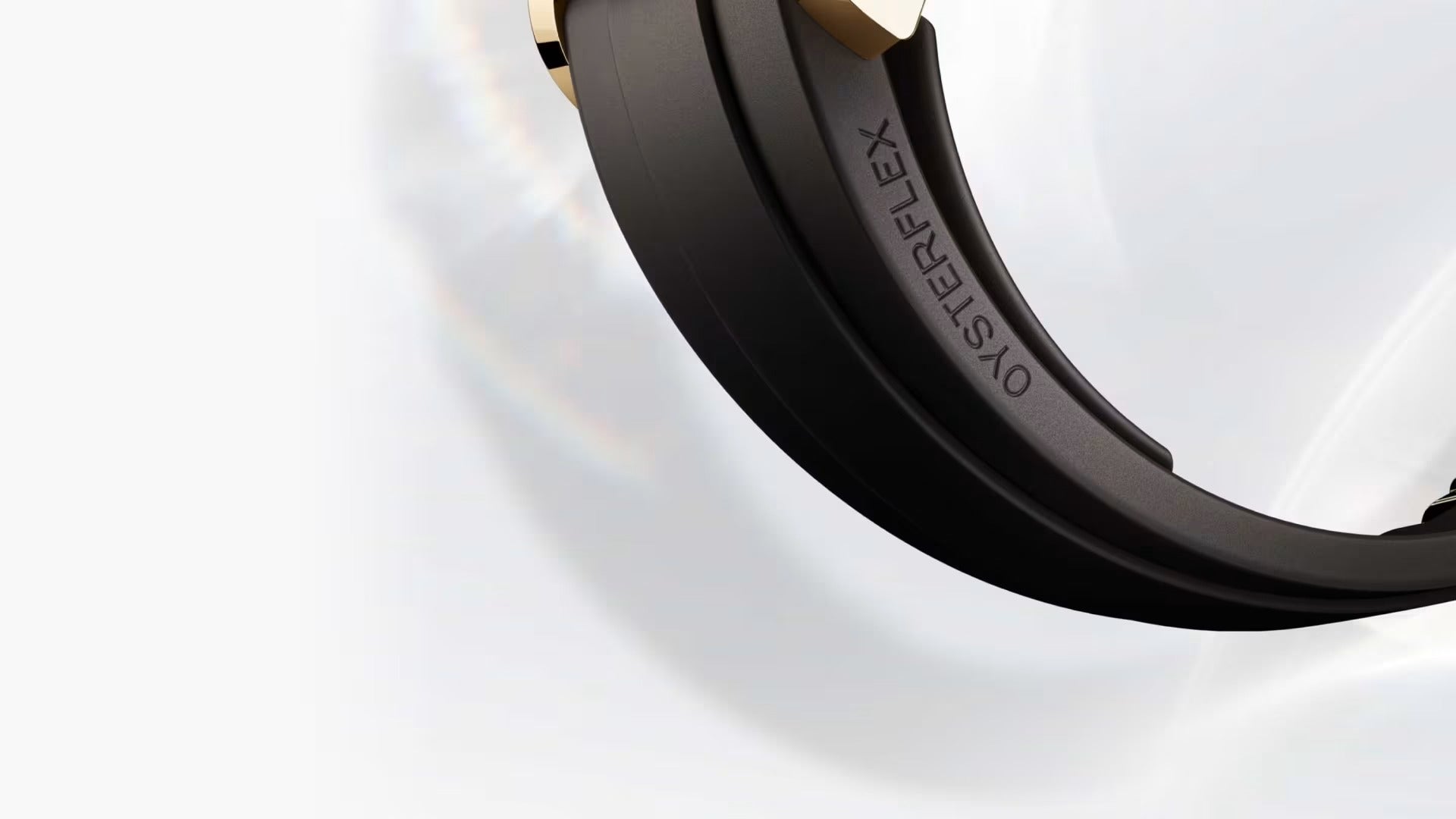 A nova pulseira Oysterflex do Yacht-Master, desenvolvida pela Rolex e patenteada, oferece uma alternativa esportiva às pulseiras metálicas. A união entre a caixa e o fecho de segurança Oysterlock está assegurada por uma lâmina metálica fabricada em uma liga de titânio e níquel, o que garante uma grande flexibilidade.